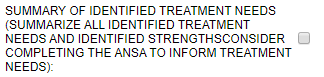 The ANSA is to be completed upon admission and at the annual treatment plan.