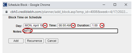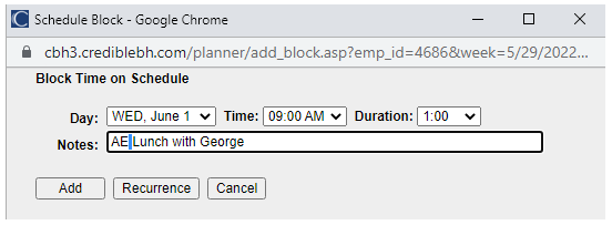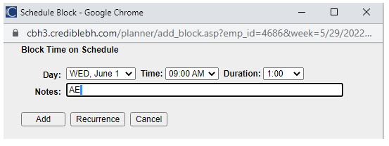 Entering Blocked Time into Credible Employee Schedule